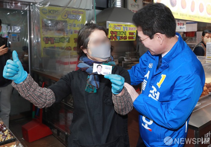 정원오 예비후보, 상인과 함박 웃음