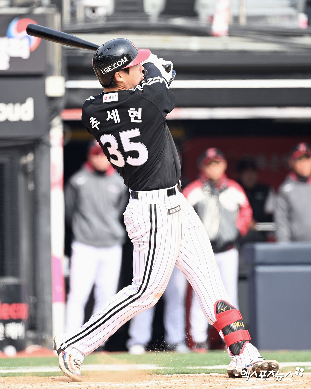 (엑스포츠뉴스 수원, 고아라 기자) 16일 오후 수원KT위즈파크에서 열린 ‘2026 신한 SOL KBO리그’ LG 트윈스와 KT 위즈의 시범경기, 6회초 무사 2루 LG 추세현이 홈런을 날리고 있다.