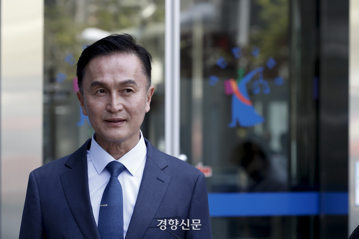 윤석열 정부의 행정안전부 경찰국 신설에 반대하며 전국경찰서장 회의를 주도한 류삼영 전 총경이 2024년 4월 서울 서초구 서울행정법원에서 열린 정직처분 취소 1심 선고 공판에서 정직 3개월 유지 판결을 받은 뒤 취재진에 입장을 밝히고 있다. 문재원 기자 |