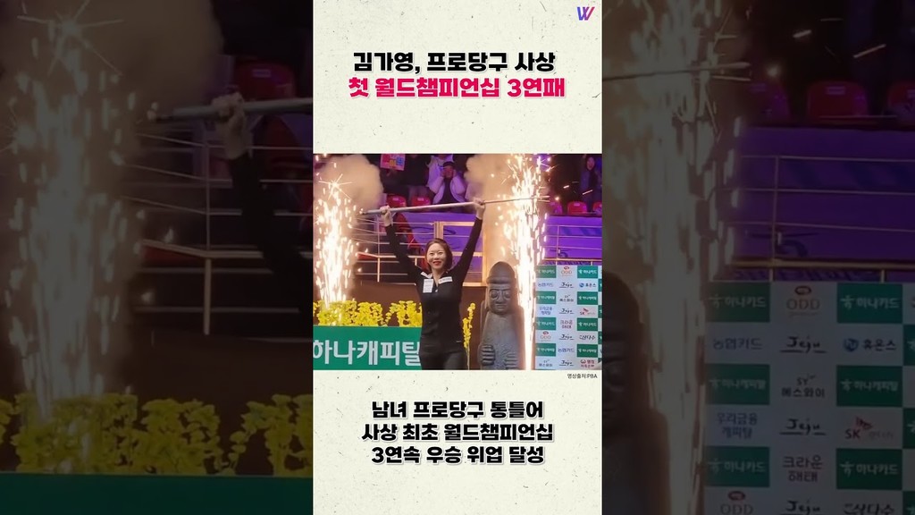 이로써 김가영은 남녀 프로당구를 통틀어 사상 최초로 월드챔피언십 3연속 우승이라는 위업을 달성했습니다.