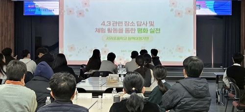 (제주=연합뉴스) 김호천 기자 = 제주도교육청은 제주4·3의 역사적 의미를 되새시기 위해 모든 학교에서 '4·3평화·인권교육 주간'을 3주간 운영한다고 16일 밝혔다.
