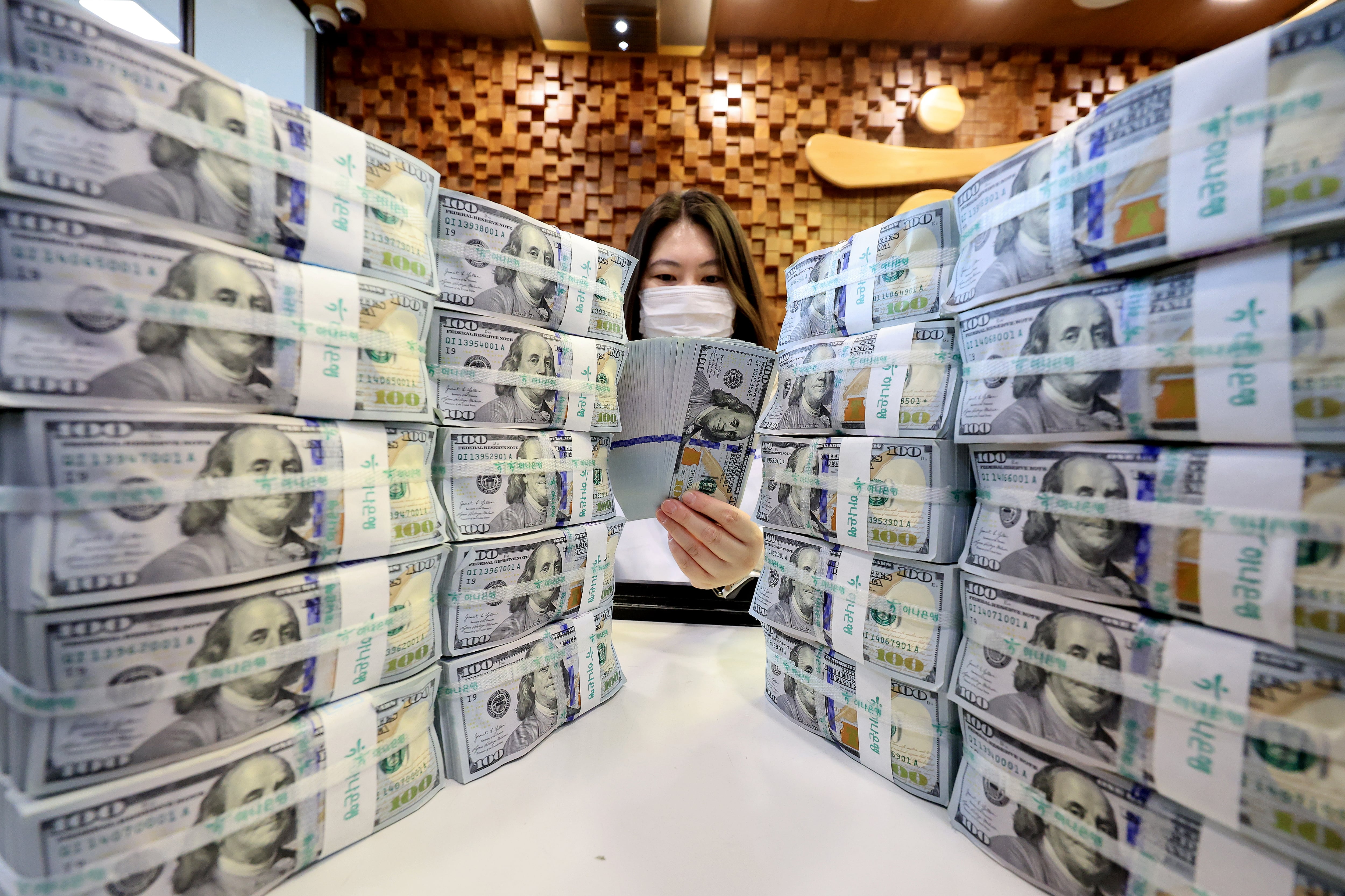 서울 중구 하나은행 본점 위변조센터에서 직원이 달러를 정리하고 있다. /뉴스1 |