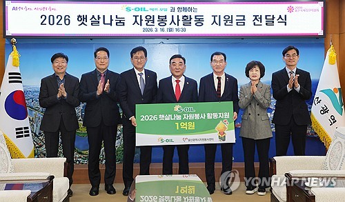 (울산=연합뉴스) 장영은 기자 = 에쓰오일은 16일 울산광역시청에서 어려운 이웃 지원과 환경 보호를 위해 울산광역시자원봉사센터에 2026 에쓰오일 햇살나눔 자원봉사 활동지원금 1억원을 전달했다.