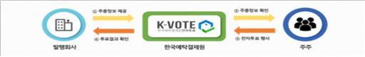 한편 기업이 예탁결제원의 전자투표 서비스를 이용하려면 주주총회 개최 전에 이사회 결의를 통해 전자투표를 채택하고 예탁결제원을 전자투표관리기관으로 지정해야 한다. 이후 주총 개최 14일 전까지 전자투표 또는 전자위임장 서비스 이용을 신청하면 된다. 전자투표 서비스는 예탁결제원 전용 사이트를 통해 이용할 수 있다.