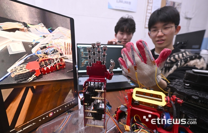 피지컬 AI 시대를 맞아 공학 인재에 대한 관심이 높아지면서 대학 공대 진학 수요와 동아리 활동도 활발해지고 있다. 16일 서울 동작구 중앙대학교에서 로봇동아리 '치로(CHIRO)' 회원들이 동아리 박람회 시연을 앞두고 로봇팔을 점검하고 있다.