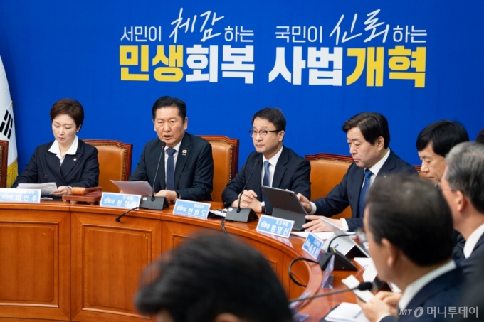 (서울=뉴스1) 유승관 기자 = 정청래 더불어민주당 대표가 16일 서울 여의도 국회에서 열린 최고위원회의에서 모두 발언을 하고 있다. 2026.3.16/뉴스1 Copyright (C) 뉴스1. All rights reserved. 무단 전재 및 재배포, AI학습 이용 금지. /사진=(서울=뉴스1) 유승관 기자 |
