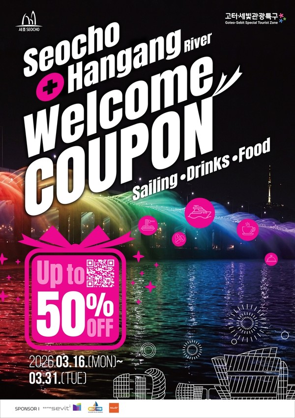 이벤트는 개인 SNS에 방문 인증사진을 게재한 뒤 고터·세빛 관광안내센터에 제출하면 선착순 3천210명에게 '서초 웰컴쿠폰'을 제공합니다.