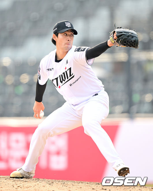 9회초 마운드에 오른 KT 스기모토 코우키가 힘차게 공을 뿌리고 있다. 2026.03.16 / dreamer@osen.co.kr