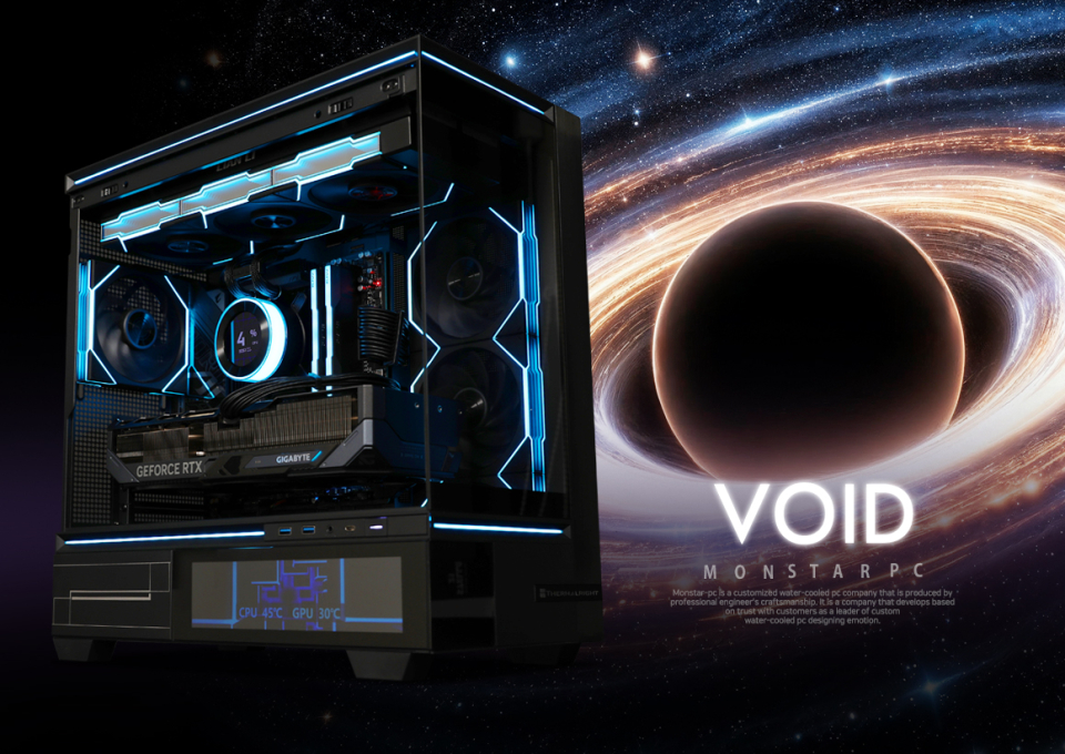 [디지털포스트(PC사랑)=임병선 기자] 고성능 하드웨어의 연산 과정에서 발생하는 열을 관리하고 시스템 상태를 실시간으로 추적하는 기술이 하이엔드 PC 빌드의 핵심 요소로 자리 잡고 있다. 특히 냉각 장치에 디스플레이를 결합하여 물리적 온도를 즉각 시각화하는 방식이 도입되고 있다. 이에 몬스타주식회사는 시각적 피드백 기능을 강화한 커스텀 PC '몬스타PC 보이드'를 선보였다.