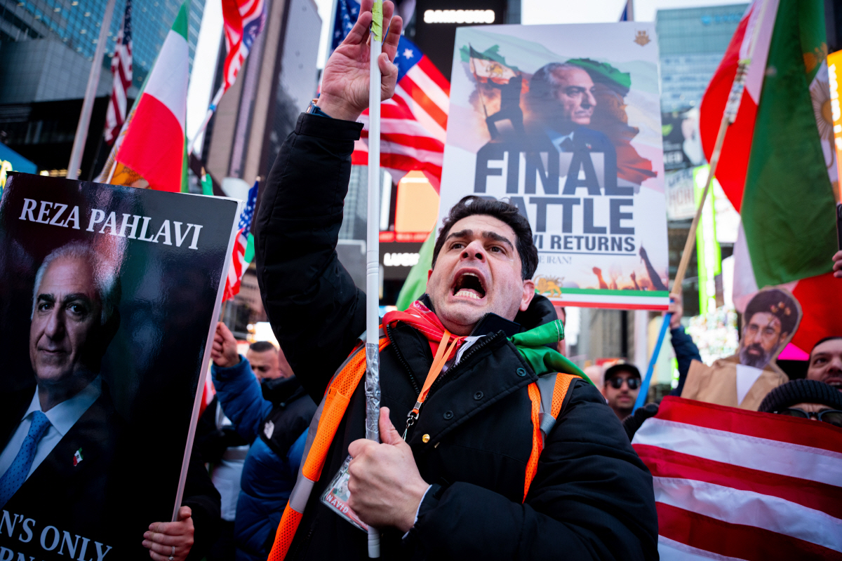 미국 뉴욕에서 15일(현지시간) 이란 전쟁을 지지하는 시위가 열리고 있다. 뉴욕/AP연합뉴스 |
