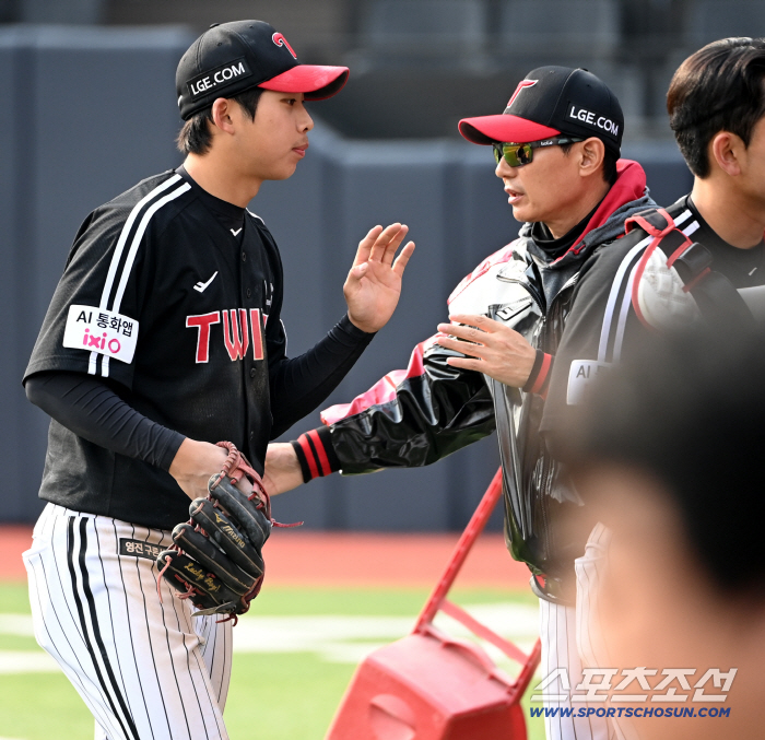 16일 수원KT위즈파크에서 열린 LG와 KT의 시범경기. LG가 5대3으로 승리했다. 염경엽 감독이 이날 경기 3안타로 활약한 추세현을 맞이하고 있다. 수원=허상욱 기자wook@sportschosun.com/2026.03.16/ |