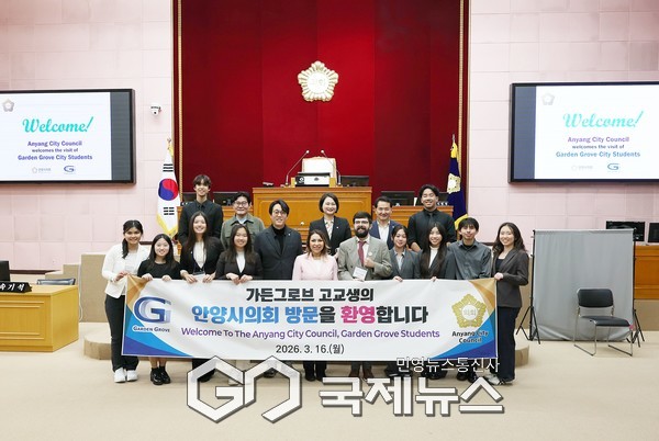 (안양=국제뉴스) 김정기ㆍ손병욱 기자 = 안양시의회(의장 박준모)는 16일 안양시의 친선결연 도시인 미국 가든그로브시 고교생 민박연수단(어렐리 플로레스 등 12명)이 안양시의회를 방문했다고 밝혔다.
