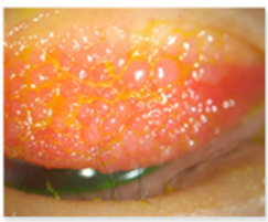 알레르기 결막염 일종인 봄철각결막염에서 나타난 거대유두. 윗눈꺼풀판결막에 마치 자갈을 깔아 놓은 것 같은 병변을 형성한다. /사진=국가건강정보포털 |