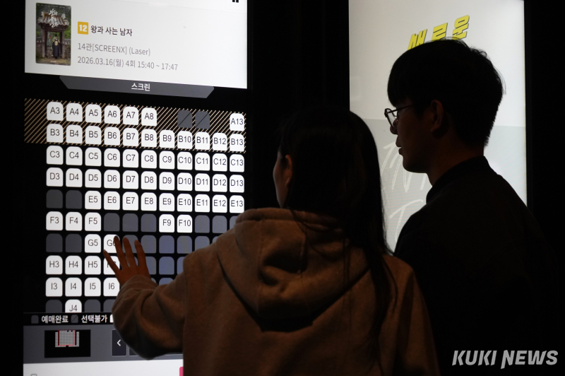 16일 오후 서울 용산구에 위치한 영화관에서 관객들이 ‘왕과 사는 남자’를 예매하고 있다. |
