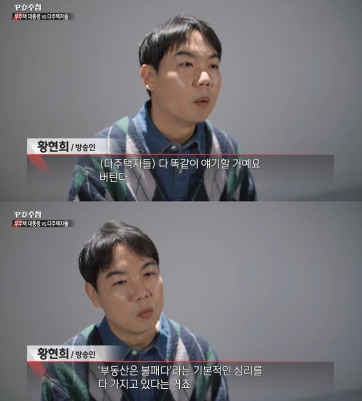 지난 10일 방송된 MBC ‘PD수첩’에 출연한 황현희는 “자산은 사고 파는 것이 아니라고 생각한다”며 “보유의 영역이라고 생각한다”고 말했다.