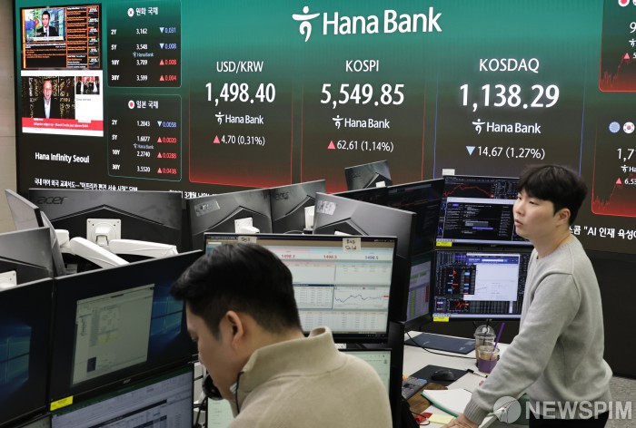 [서울=뉴스핌] 양윤모 기자= 중동 사태 여파로 달러/원 평균 환율이 외환위기 이후 가장 높은 수준을 기록한 16일 오후 서울외환시장에서 전장 대비 4.70원 상승한 1498.40원에 주간거래를 마감한 가운데, 서울 중구 하나은행 을지로본점 딜링룸에서 직원들이 업무를 보고 있다. 2026.03.16 yym58@newspim.com |