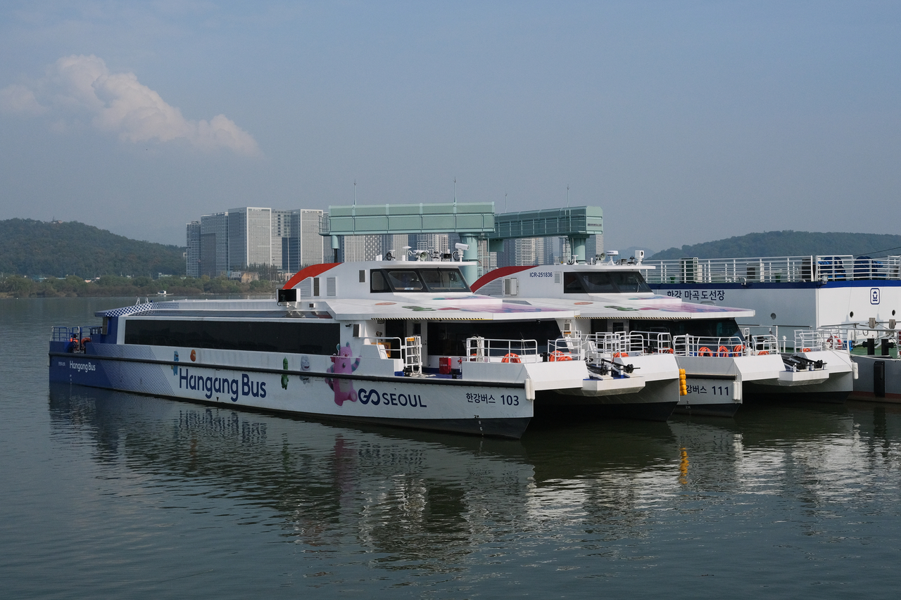 서울 강서구 마곡 도선장에 정박해 있는 한강버스 모습. [연합] |