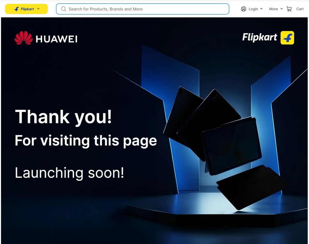 스크린샷에는 "페이지를 방문해 주셔서 감사합니다. 곧 출시됩니다"라는 문구와 함께 태블릿 형태의 이미지가 담겼고, 초우다리는 "화웨이가 태블릿뿐만 아니라 스마트폰, 무선 이어폰(TWS), 노트북, 스마트 밴드 등 다양한 제품군을 인도 시장에 출시할 것으로 예상된다"고 언급했다고 매체는 전했다.