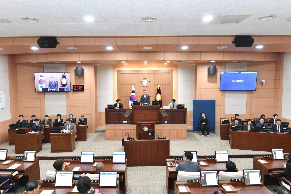 본회의에 앞서 열린 5분 자유발언에서는 지역 현안을 다룬 발언이 이어졌다. 김창수 의원은 "남산공원 조성 시 시민 안전과 공원 품격을 함께 고려해야 한다"고 강조했고. 김유상 의원은 무연고 사망자 장례 지원 확대를 촉구했다. 강영수 의원은 신문1지구 초등학교의 차질 없는 개교와 안전한 통학 대책 마련을 주문했다.