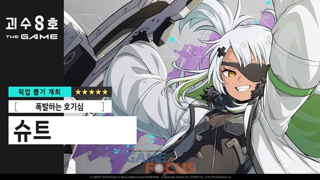 아카츠키 게임즈(Akatsuki Games)가 토호(TOHO) 및 프로덕션 I.G.(Production I.G.)와 공동으로 제작해 정식 서비스를 시작한 RPG '괴수 8호 THE GAME'에 ★5 캐릭터 '[폭발하는 호기심] 슈트'를 업데이트했다고 밝혔다.