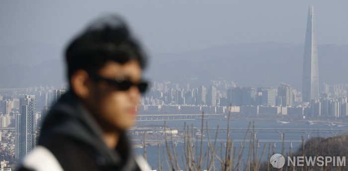 [서울=뉴스핌] 류기찬 기자 = 초미세먼지 농도가 나쁨 수준을 보인 15일 오후 서울 중구 남산에서 바라본 도심이 뿌옇다. 2026.02.15 ryuchan0925@newspim.com |