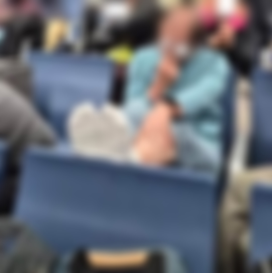 함께 공개된 사진에는 이 남성이 공항 대합실 의자에 앉아 신발을 벗은 채 양발을 앞좌석 등받이에 올려놓은 모습이 담겼습니다.