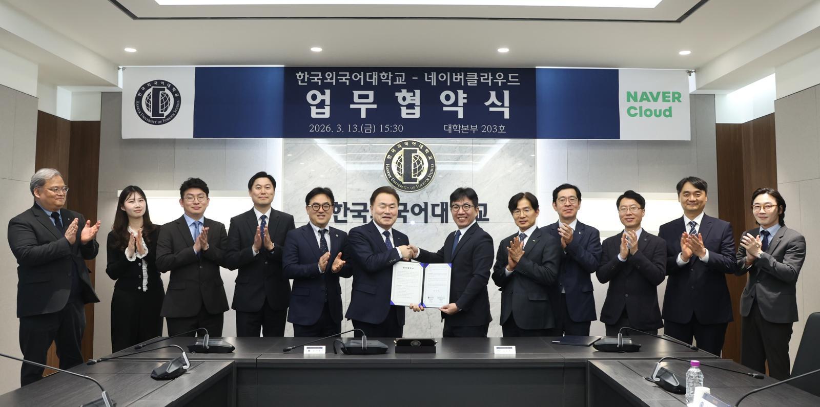 한국외국어대학교는 네이버클라우드와 AI 기반 교육·연구 혁신과 스마트캠퍼스 구축을 위한 업무협약(MOU)을 체결했다고 16일 밝혔다.