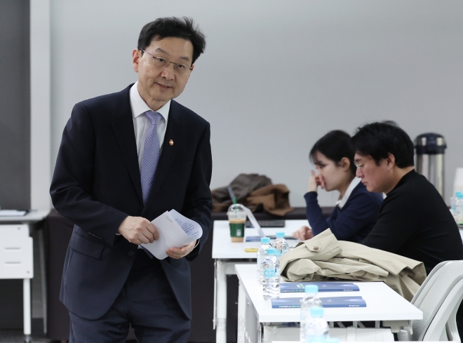 검찰개혁추진단장인 윤창렬 국무조정실장이 16일 서울 종로구 HJ 비즈니스센터 광화문점에서 열린 검찰개혁추진단 주최 ‘보완수사와 보완수사요구 토론회’에 참석하고 있다. 뉴시스 |