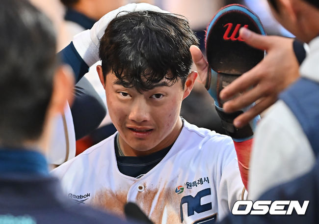 NC 다이노스 최정원이 5회말 1사 3루 권희동의 희생플라이볼때 득점을 성공하고 하이파이브를 하고 있다. 2026.03.16 / foto0307@osen.co.kr