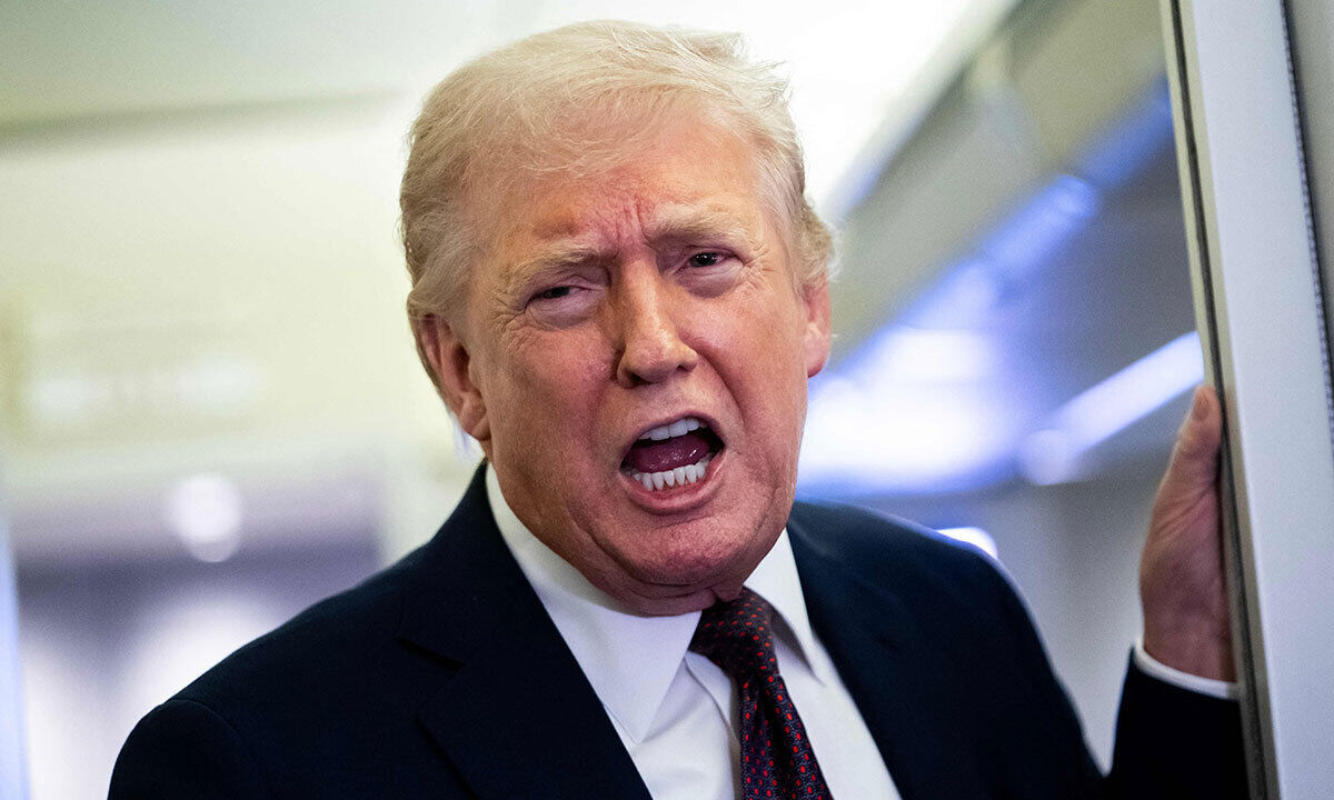 2026년 3월 15일(현지시간) 도널드 트럼프 미국 대통령이 대통령 전용기(에어포스원) 기내에서 취재진과 대화하고 있다. AFP연합뉴스 |