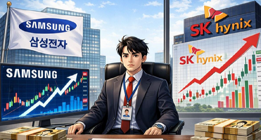 삼성전자, SK하이닉스 주가 상승. 사진은 챗GPT 인공지능(AI) 생성 이미지. [사진=챗GPT] |