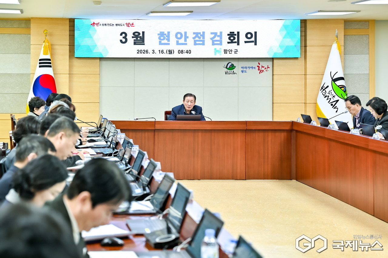 (함안=국제뉴스) 주영곤 기자 = 함안군은 16일 함안군청 중회의실에서 3월 현안점검회의를 열고 청년정책 추진과 적극행정 실천, 주요 행사 준비 등 주요 현안을 점검했다고 밝혔다.