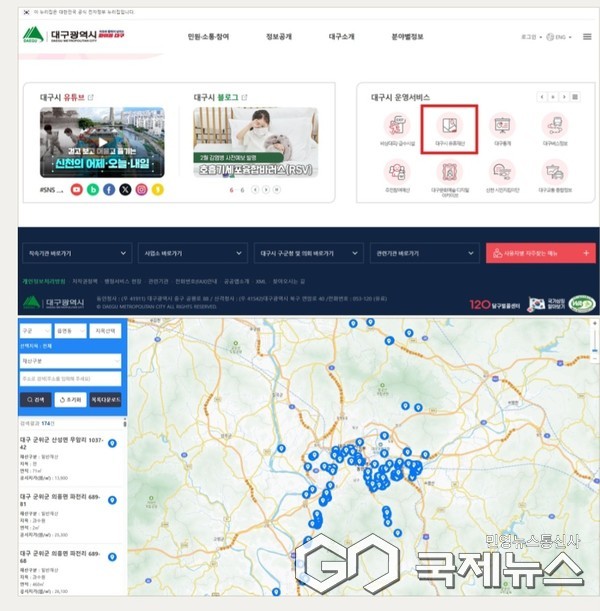 대구광역시는 "그동안 매각·대부가 가능한 유휴 공유재산 정보는 대구시 홈페이지 내 여러 단계의 메뉴를 거쳐야 확인할 수 있어 접근성이 낮고, 단순 목록 형태로 제공돼 시민들이 재산의 위치와 현황을 직관적으로 파악하기 어렵다는 지적이 있었다."고 설명했다.