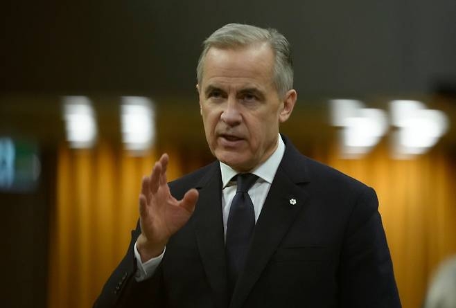 마크 카니 캐나다 총리가 27일(현지시간) 오타와 국회의사당에서 열린 하원 질의에서 미국과의 무역협상 전망 관련 질의에 답변하고 있다. [AP] |