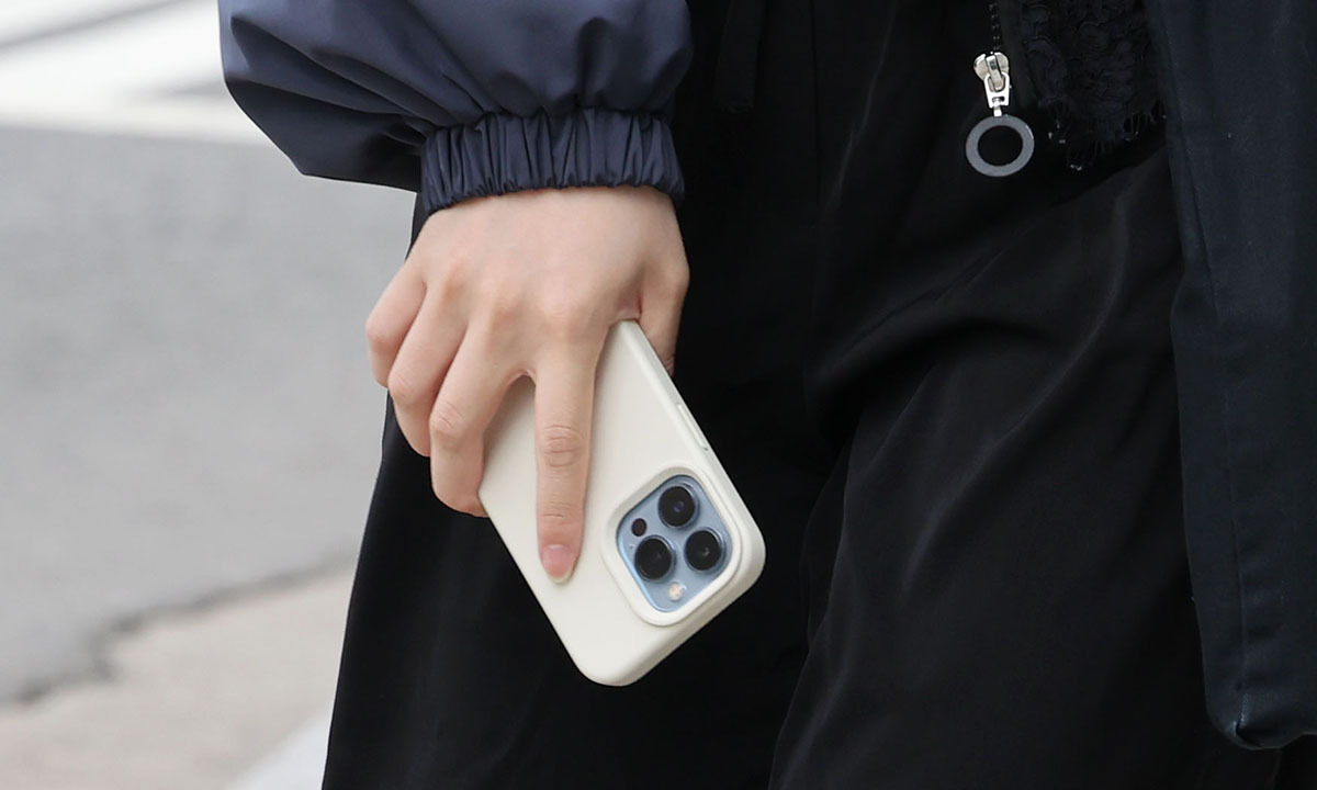 핸드폰을 든 한 학생이 이동하고 있다. 연합뉴스 |