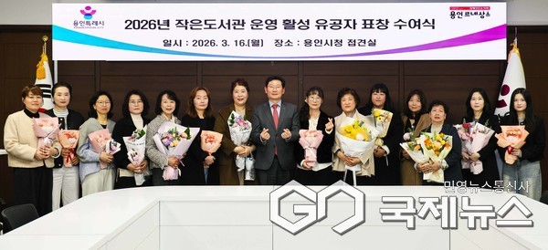 (용인=국제뉴스) 강정훈 기자 = 용인시(시장 이상일)는 16일 시장 접견실에서 '2026년 작은도서관 운영 활성 유공자 표창 수여식'을 개최했다.