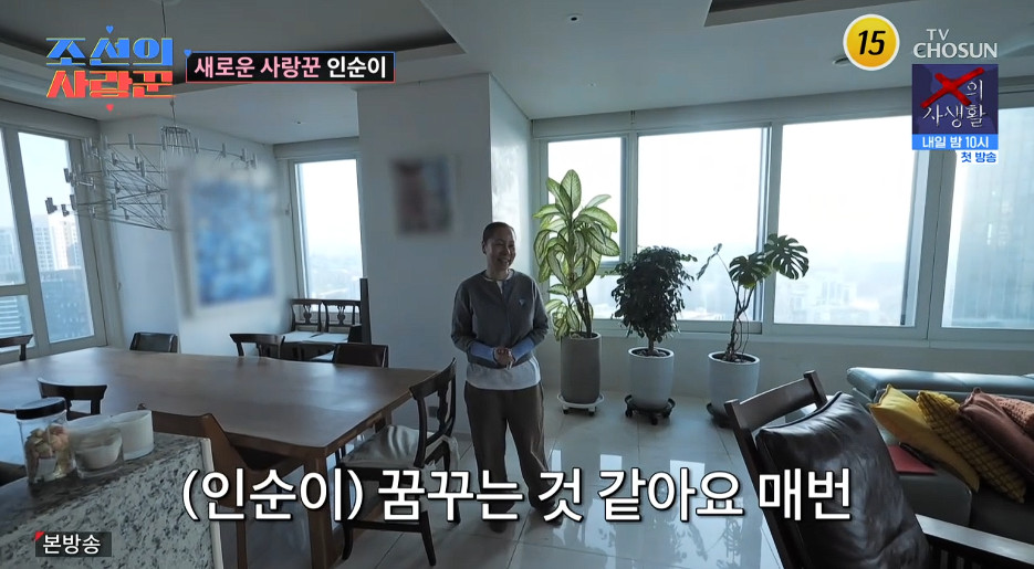 그렇게 공개된 VCR에서는 성수동에 위치한 인순이의 집이 공개됐다. 모던한 느낌, 넓은 거실에 제작진은 "집이 너무 좋다"고 감탄했고, 인순이는 "저도 매번 꿈꾸는 것 같다. 남편과 둘이 산다"고 뿌듯함을 드러냈다.