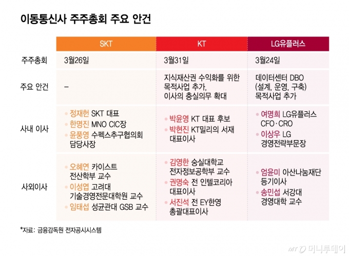 오는 24일 LG유플러스 시작으로 KT·SKT 줄줄이 주주총회
