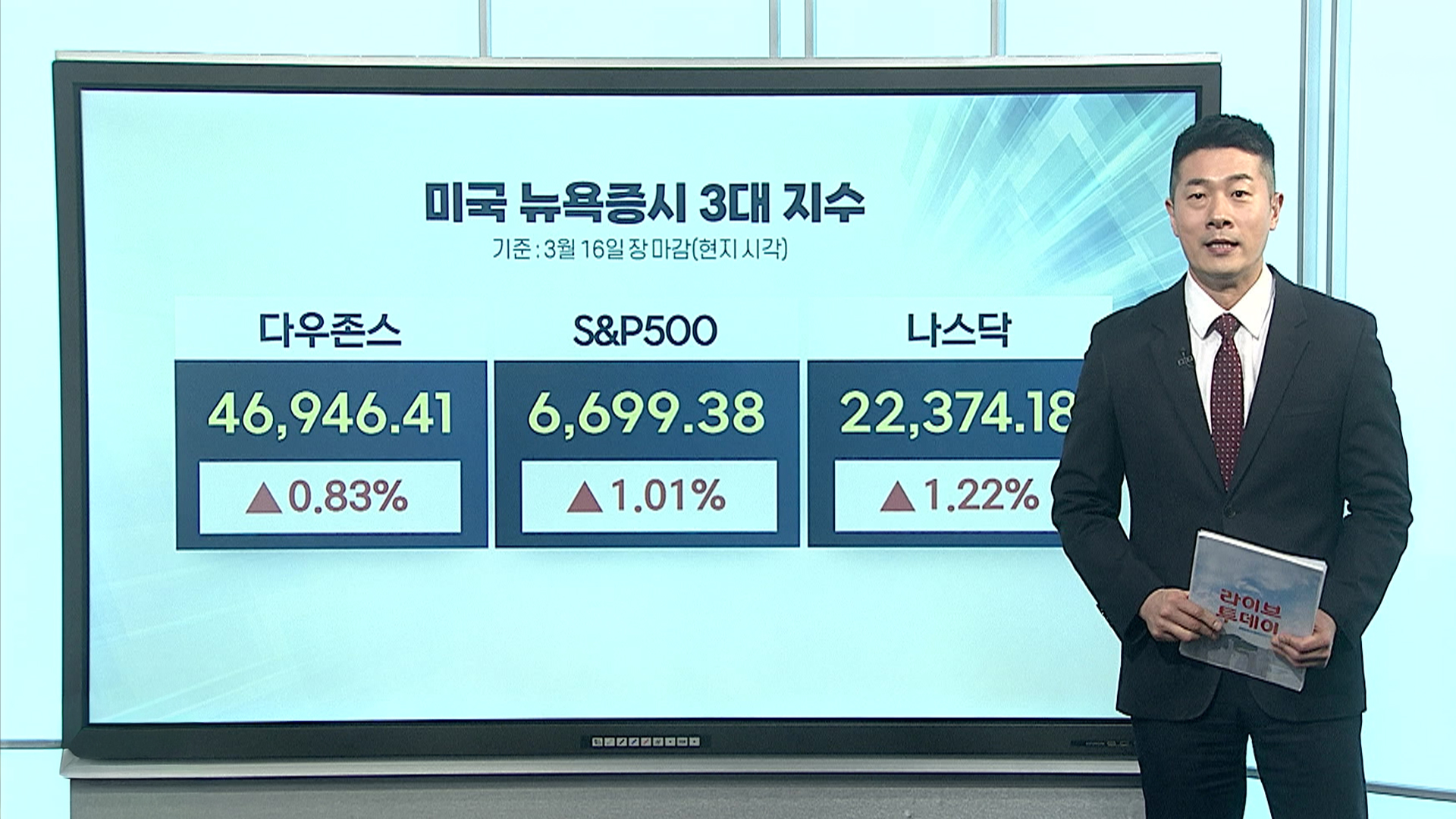 현지 시간 16일, 다우존스30산업평균지수는 전 거래일보다 0.83%, S&P500 지수는 1.01%, 나스닥 종합지수는 1.22% 오르면서 장을 마쳤습니다.