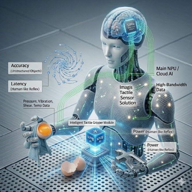 이번 협력에서 시마AI가 주목한 부분은 이미지스가 보유한 초정밀 센싱 및 액추에이션 기술이다. 특히 휴머노이드 로봇 분야에서는 카메라 기반 시각 정보만으로는 한계가 있어 물체의 질감이나 압력을 감지하는 촉각 센싱 기술의 중요성이 커지고 있다.