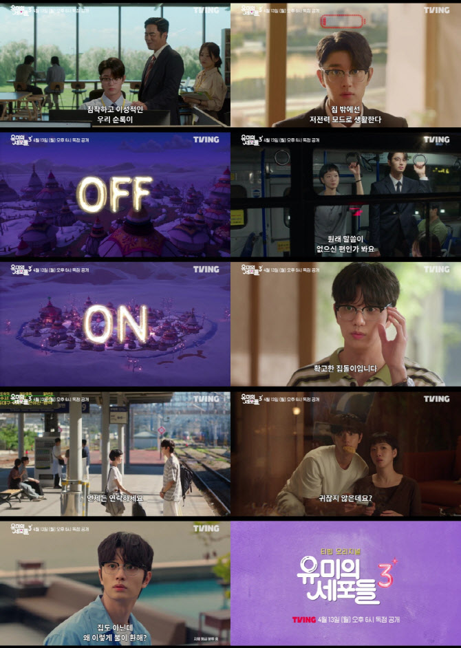 티빙 오리지널 ‘유미의 세포들 시즌3’는 오는 4월 13일부터 매주 월요일 오후 6시 티빙에서 2회씩 독점 선공개되며, tvN에서는 매주 월, 화 오후 8시 50분에 1회씩 방송된다.