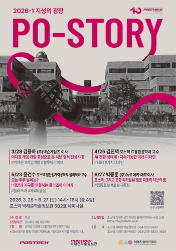 (포항=연합뉴스) 손대성 기자 = 포항공대(POSTECH)는 3월부터 6월까지 매달 넷째 주 토요일 오후 2시 교내 박태준학술정보관에서 시민 대상 강연을 연다고 17일 밝혔다.