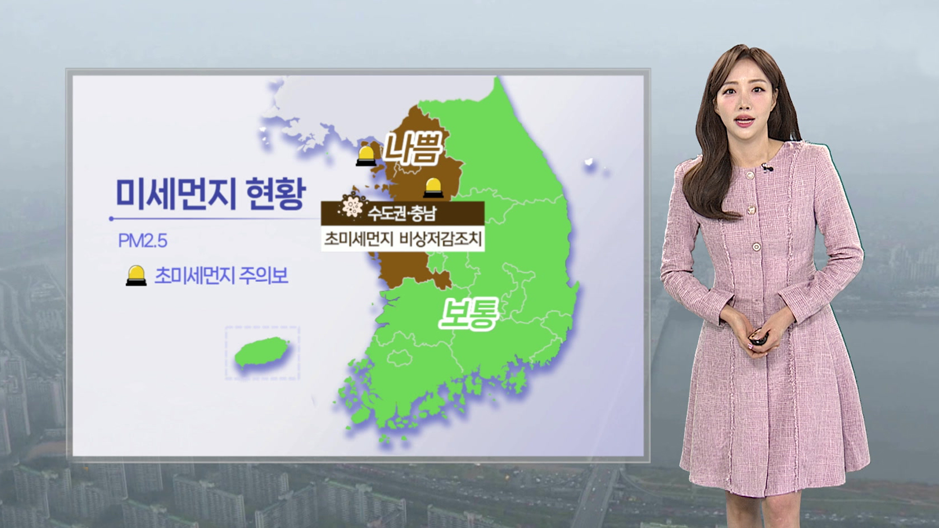 이에 따라, 이들 지역에는 초미세먼지 비상저감조치가 내려졌고, 인천과 경기에는 초미세먼지 주의보도 발효 중입니다.