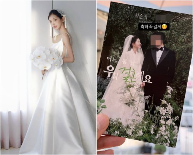 17일 최준희는 자신의 개인 채널을 통해 지인이 올린 게시물을 공유했다. 공개된 사진 속에는 최준희와 그의 남자친구가 다정하게 손을 맞잡고 있는 청첩장이 담겨 있어 훈훈함을 자아낸다.