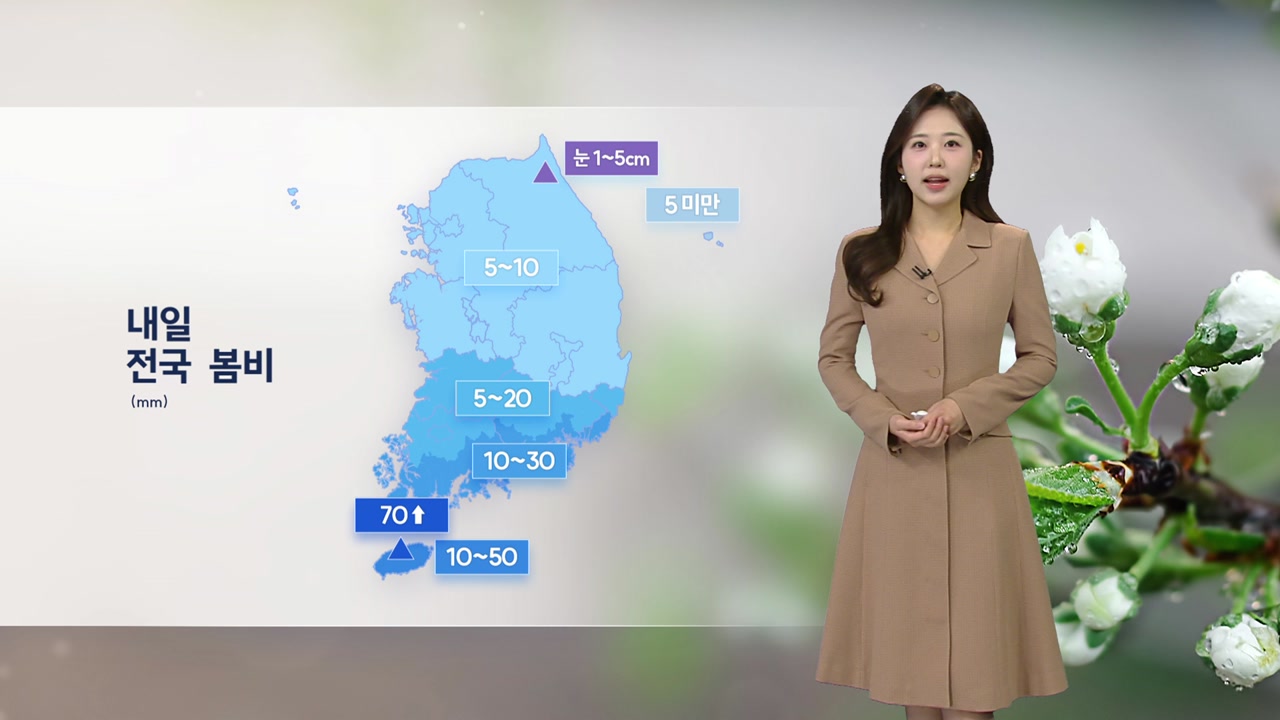 맑고 포근한 오늘과 달리, 내일은 전국에 봄비가 내리면서 기온도 내려가겠습니다.