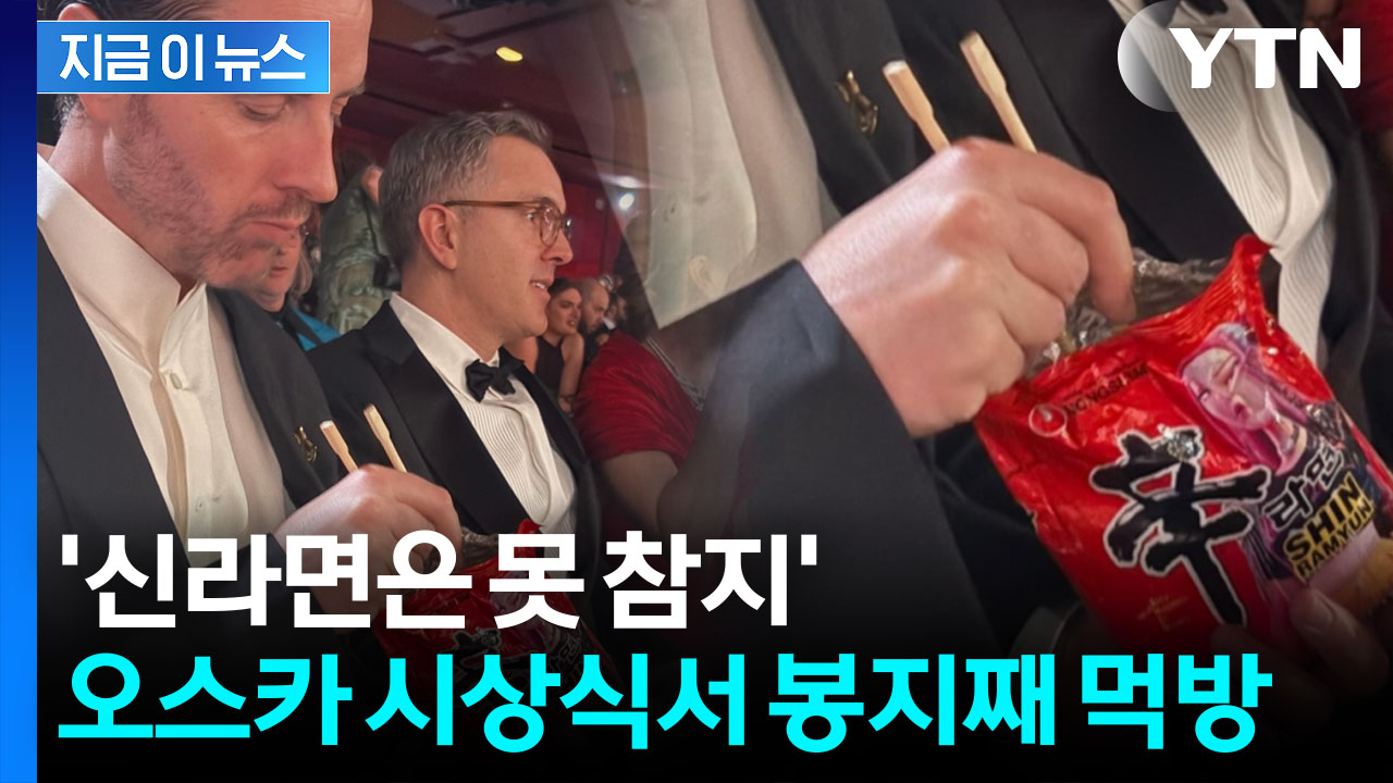 아펠한스 감독은 오스카 시상식장에 앉아 나무젓가락을 들고 생라면을 먹었습니다.
