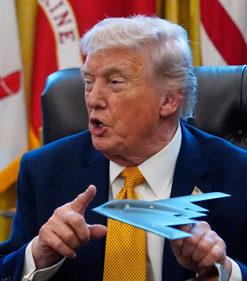 B-2 전략폭격기 모형 든 트럼프 도널드 트럼프 미국 대통령이 16일(현지 시간) 백악관 집무실에서 가진 행정명령 서명식에서 미 공군의 스텔스 폭격기로 이번 이란 공격 때도 투입된 B-2 스피릿 모형을 들고 있다. 이날 트럼프 대통령은 “주한미군 규모가 4만5000명”이라며 한국이 호르무즈 해협 군사작전에 힘을 보태야 한다고 요구했다. 트럼프 대통령의 언급과 달리 현재 주한미군 규모는 약 2만8500명이다. 워싱턴=AP 뉴시스 |
