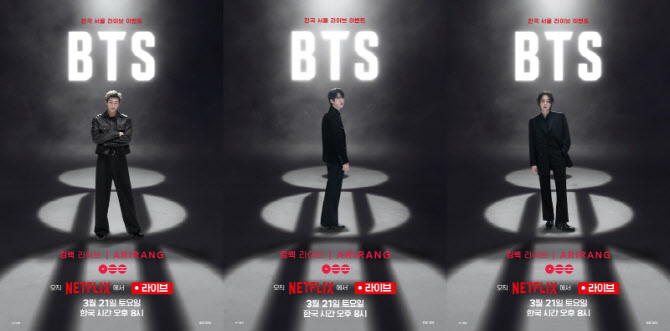 넷플릭스가 오는 21일 오후 8시 광화문 광장에서 열리는 ‘BTS 컴백 라이브: 이라링(ARIRANG)’의 전 세계 단독 생중계를 3일 앞두고, 방탄소년단 일곱 멤버의 솔로 포스터를 공개했다.