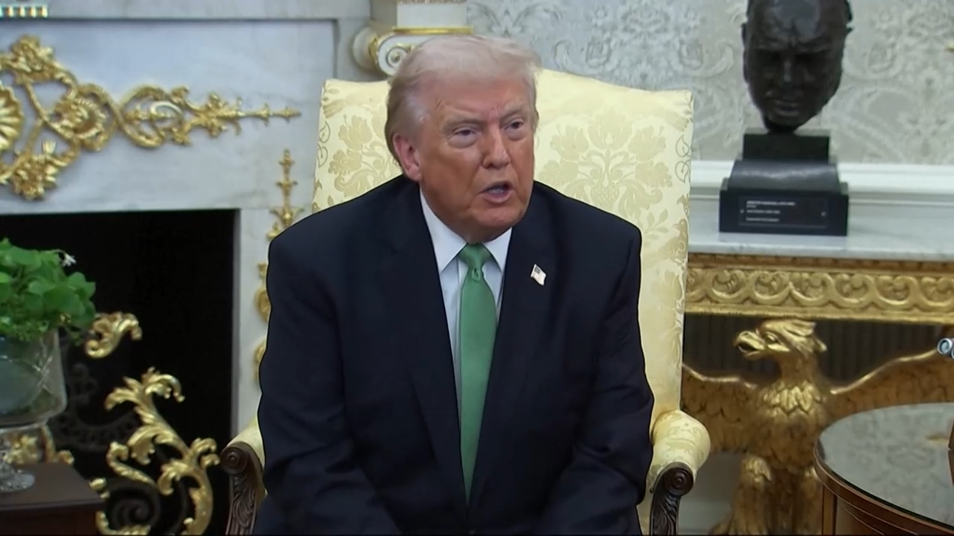 <도널드 트럼프 / 미국 대통령> "실망했습니다. 키어 영국 총리가 우리가 이긴 뒤에 항공모함 두 척을 보내겠다고 했습니다. 바로 저기 윈스턴 처칠(흉상)을 모셔뒀습니다. 안타깝게도 키어는 윈스턴 처칠이 아닙니다."