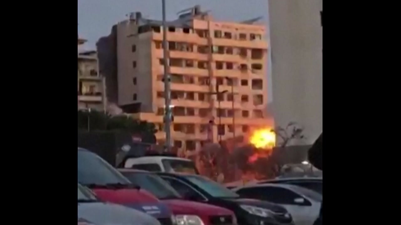 이스라엘군이 레바논 수도 베이루트 공습을 이어가고 있는 가운데, 베이루트 중심부에 있는 건물이 공습으로 완전히 붕괴되는 모습이 포착됐습니다.